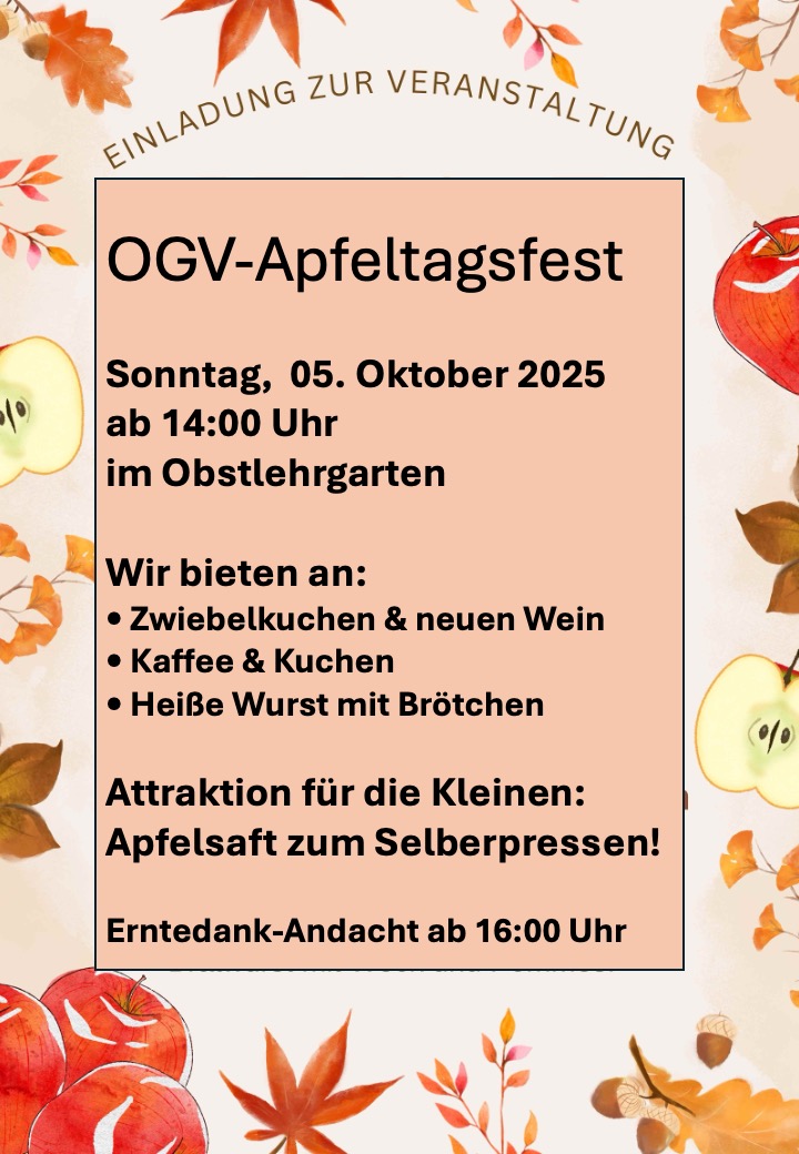 Wann? Freitag, 22.08.2025, 18:00 Uhr bis 18:30 Uhr! Dauer? 30 Minuten (offizieller Teil des Vortrages) - danach gemütliches "Afterwork" zusammensitzen! Wo? Obstlehrgarten des OGV Oberhausen-Rheinhausen Was? Zweiter Teil des Impuls-Vortrags „Naturnaher Garten“ Drei Stationen, die über den Obstlehrgarten verteilt sind: Blumenwiese richtig pflegen Obstbaum im Garten – Sorten- & Unterlagenwahl Essbare Wildpflanzen – alte Bekannte neu entdeckt […]